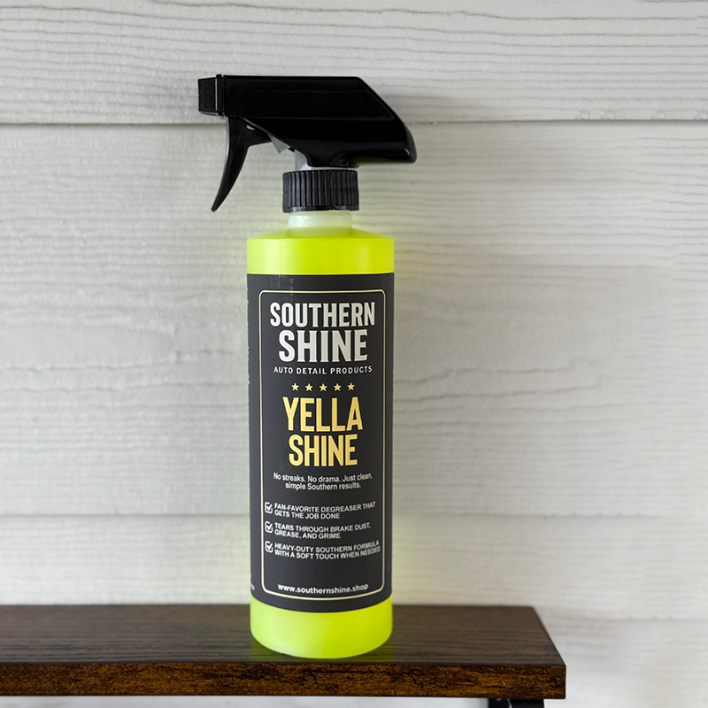Cut through the toughest dirt and grime with Southern Shine’s Yella Shine, a fan-favorite degreaser trusted for its unmatched power and reliability. Designed for both professionals and everyday detailers, this bold formula delivers results you can see instantly. From brake dust to greasy buildup, Yella Shine restores a spotless, like-new finish that makes every surface shine with confidence.