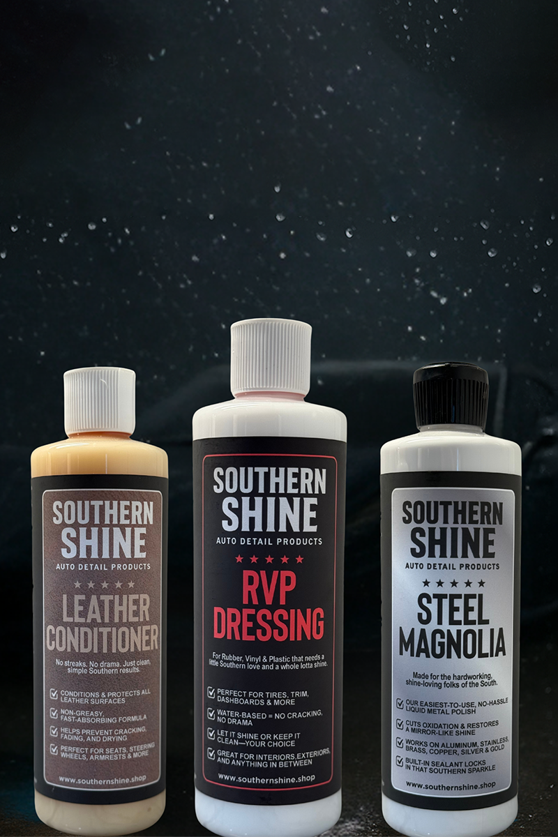 "I use Southern Shine’s RVP Dressing on every detail job—dashboards, tires, trim, you name it. The satin finish is clean, not greasy, and it lasts for weeks. My clients love the natural look!"